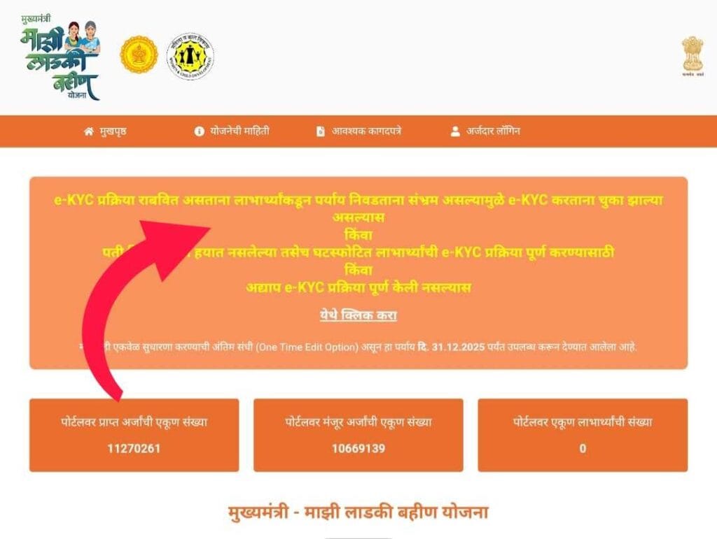 ज्या महिलांचे पती हयात नाहीत, ज्यांचे वडील हयात नाहीत, ज्या महिलांनी अद्याप ई-केवायसी केली नाही, तसेच ज्या महिलांची ई-केवायसी अर्धवट (हाफ केवायसी) राहिली आहे, अशा सर्व महिलांनी नव्याने ई-केवायसी पूर्ण करणे आवश्यक आहे. तसेच आधी केलेली ई-केवायसी चुकीची असल्यास ती दुरुस्त करण्यासाठीही ही संधी उपलब्ध आहे.