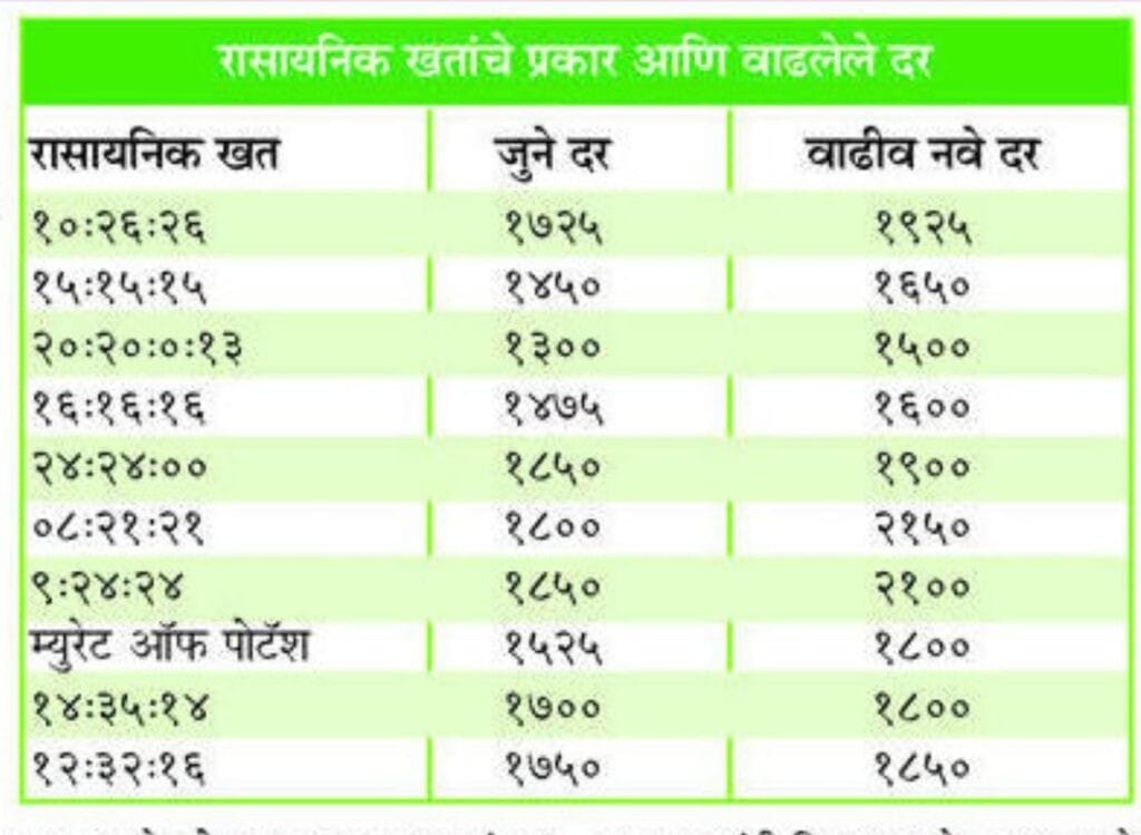 • बहुतांश खतांच्या किंमतीत ₹200 ते ₹300 प्रति बॅग इतकी वाढ