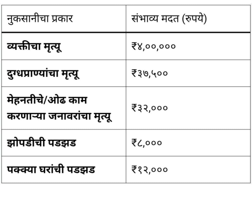 संभाव्य मदतीचे स्वरूप (प्रति व्यक्ती/नुकसान)